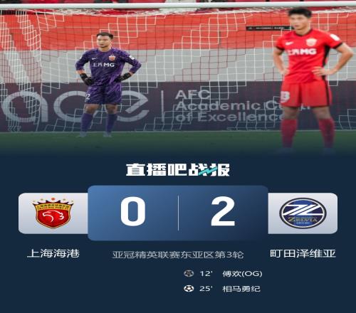 体育播报10月21日宣 亚冠精英联赛第3轮,海港0-2不敌町田,面对3个J联赛对手一场未胜,1平2负进1球丢6球。